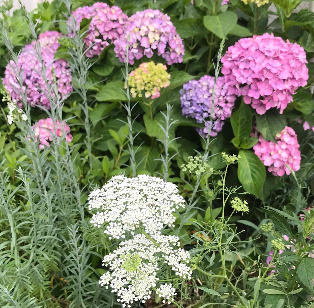 アジサイとレースフラワーでしょうか?綺麗で、癒されました〜☺️