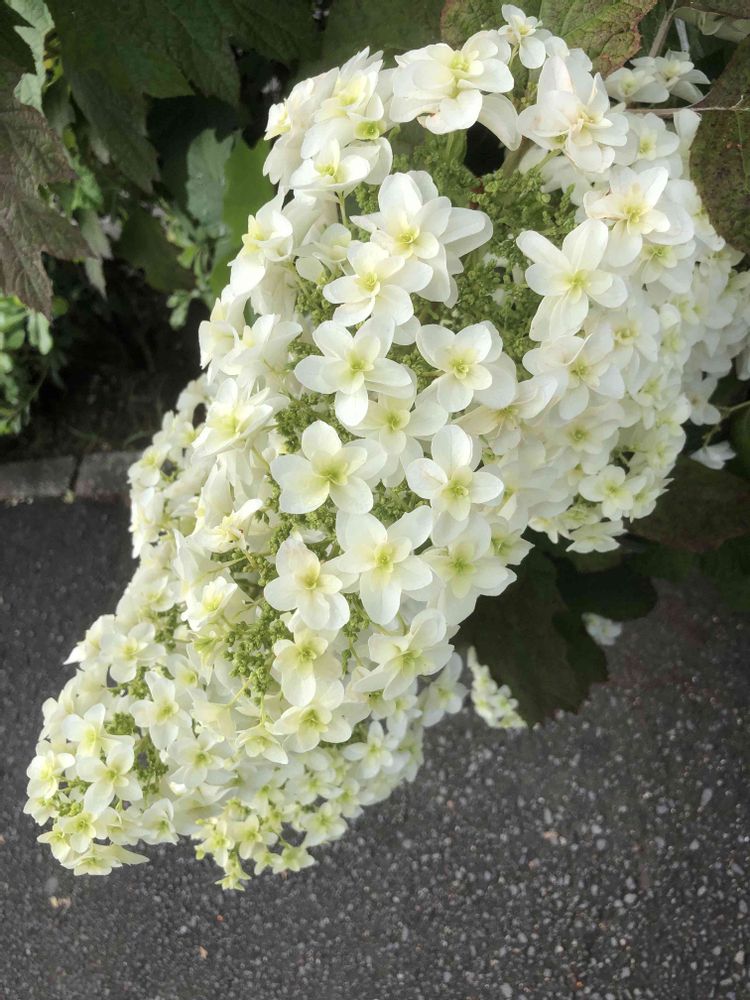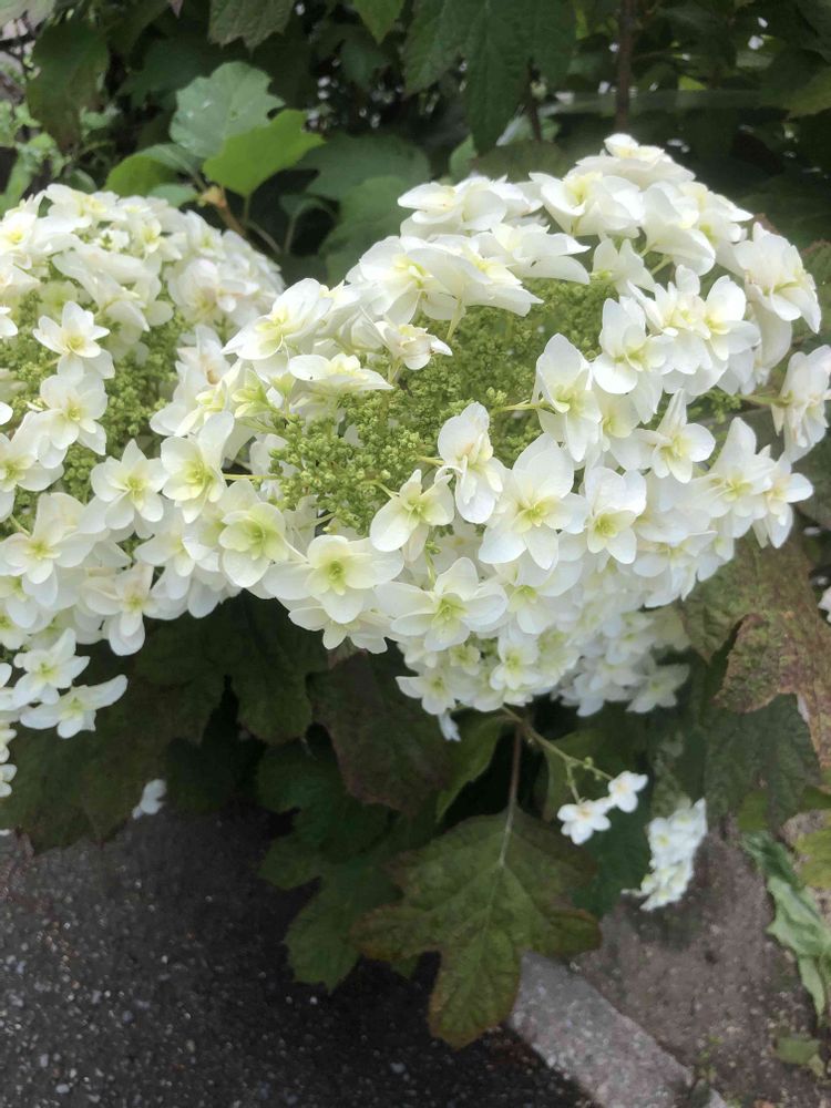 道路沿いの花壇にて、白い「カシワバアジサイ」をパチリ!📸🤍🌿