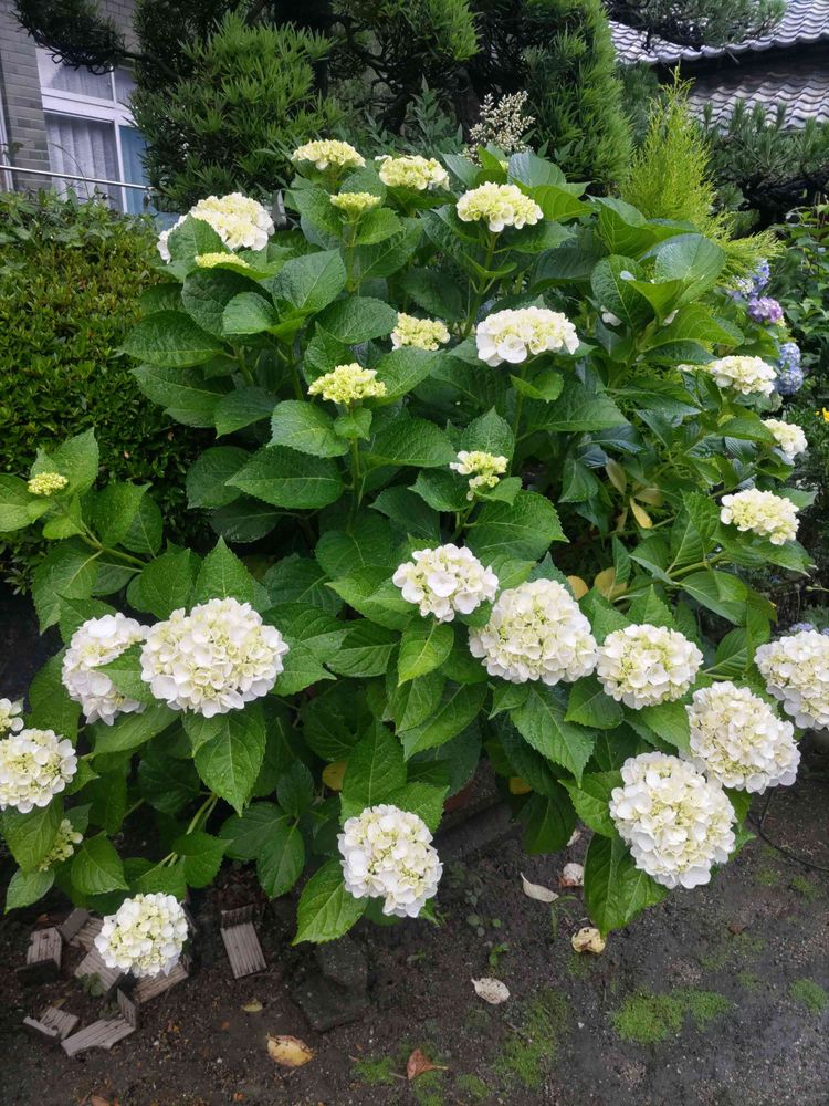 白い紫陽花。うちのと同じみたい。私は挿し木からの白い紫陽花です。