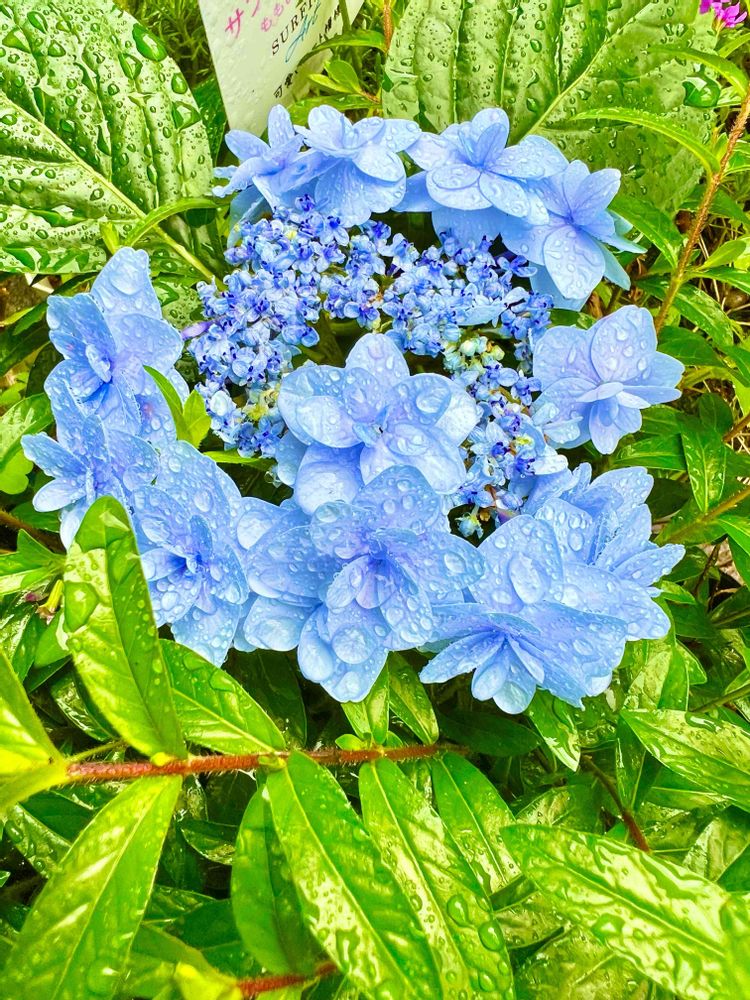 今日は富山も東京も雨、そんな日も、このブルーのガクアジサイを眺めると心が和みまね(*˘︶˘*).。.:*♡