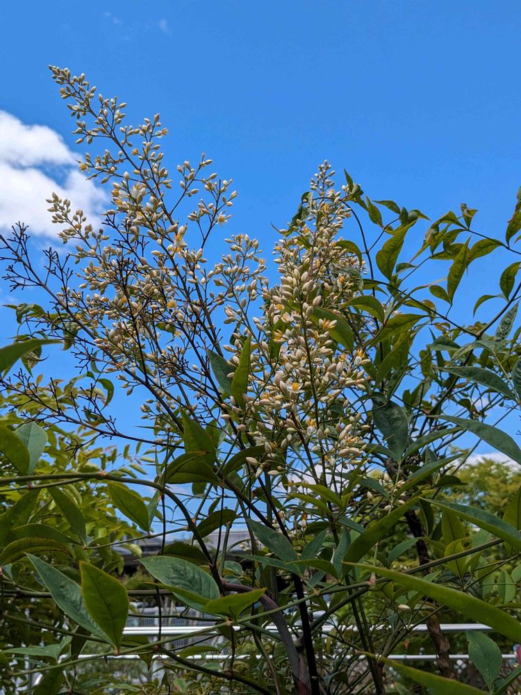 南天の花の時期は雨で花粉が流され受粉し難いので傘やビニール袋をかぶせてると聞きました🤓👍👌🫶