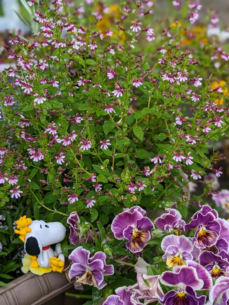 素敵で、おしゃれなお色の お花満開𖤣𖥧𖥣。𖥧𖧧で スヌさんとウッドストック🐦も 見惚れてますね😘