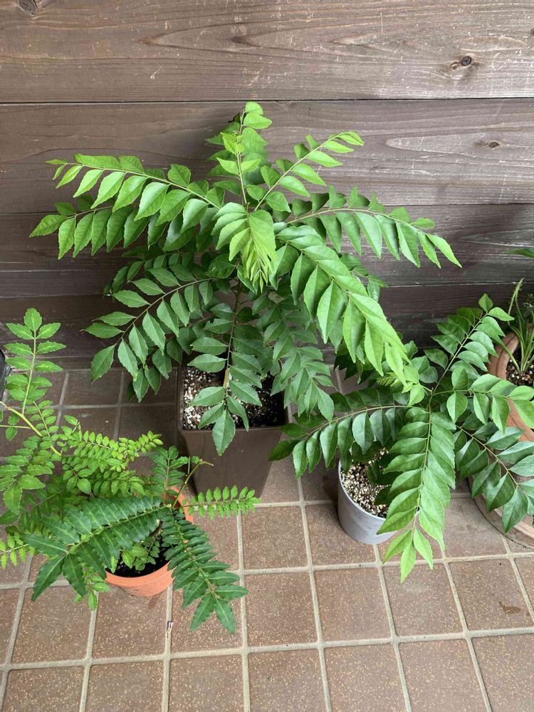 ちなみに2鉢のカレーリーフ、カレー作りに欲しくて大きい方はホムセン、小さい方はメルカリで苗を購入しました。鉢の違いはあるけど、成長に大分違いがありますね!