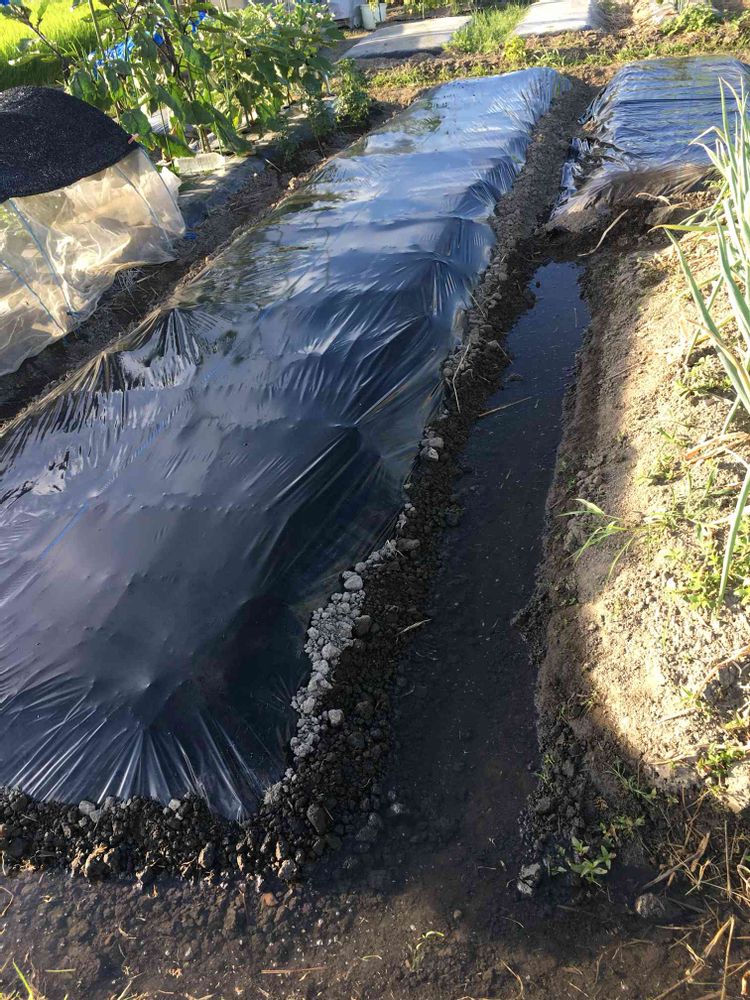 何とか秋野菜用の畝にマルチをかける作業も間に合って良かった😊