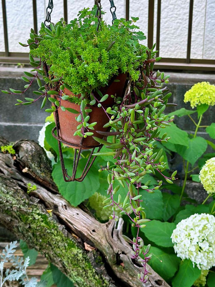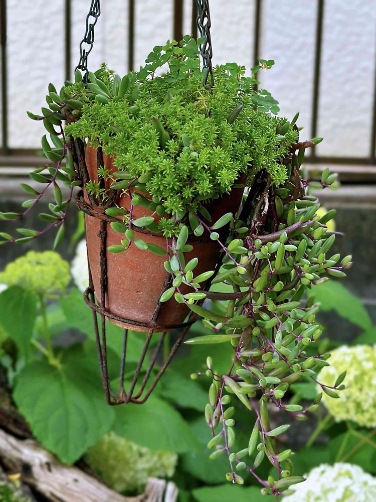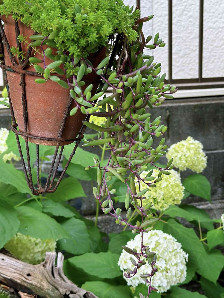 庭でほったらかしの割には、枯れたかなぁと思っていても、春には元気に復活する[ルビーネックレス]と[セダム]+[シロツメクサ]☘️☘️☘️