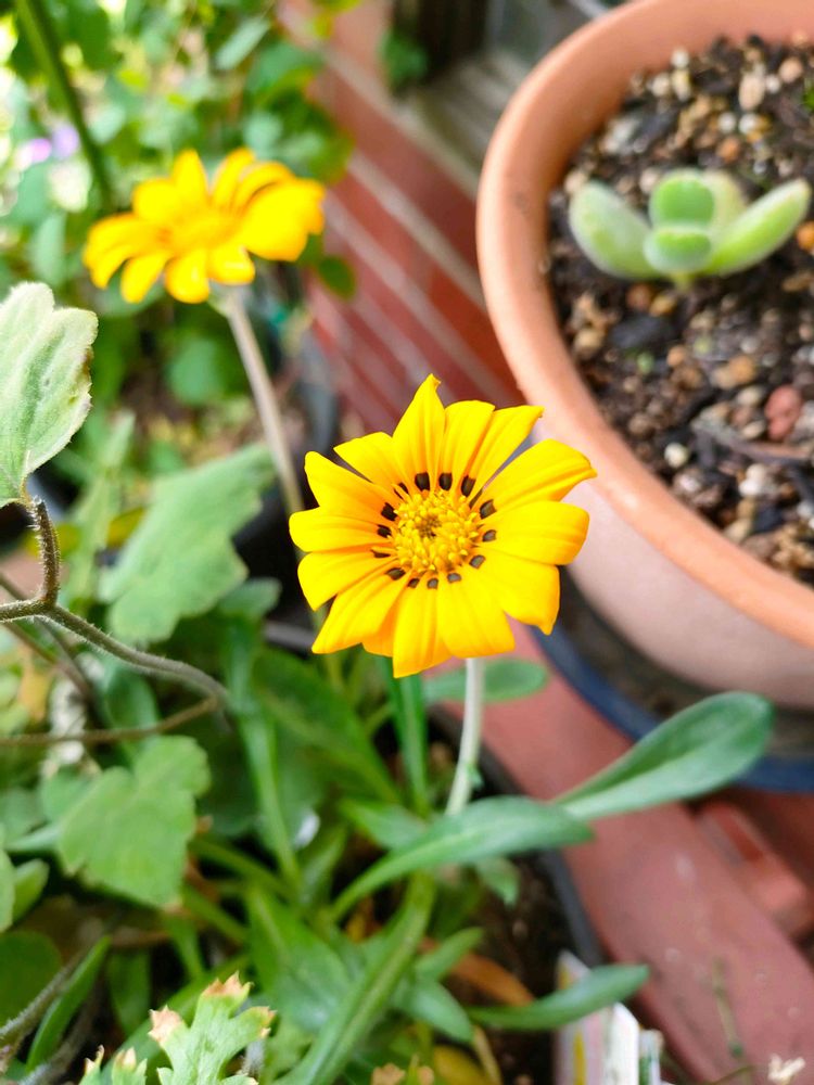 寄せ植えの中で、小さく咲いてるガザニアさんです。😊