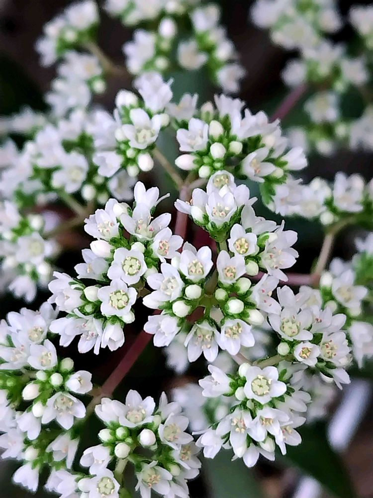 クラッスラ・オルビキュラリス ロスラリスさんのお花さんが咲きました😻🤍💜💚