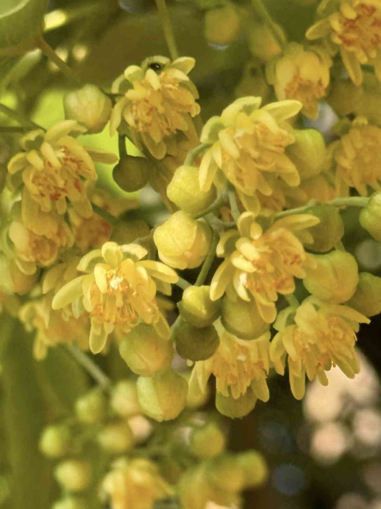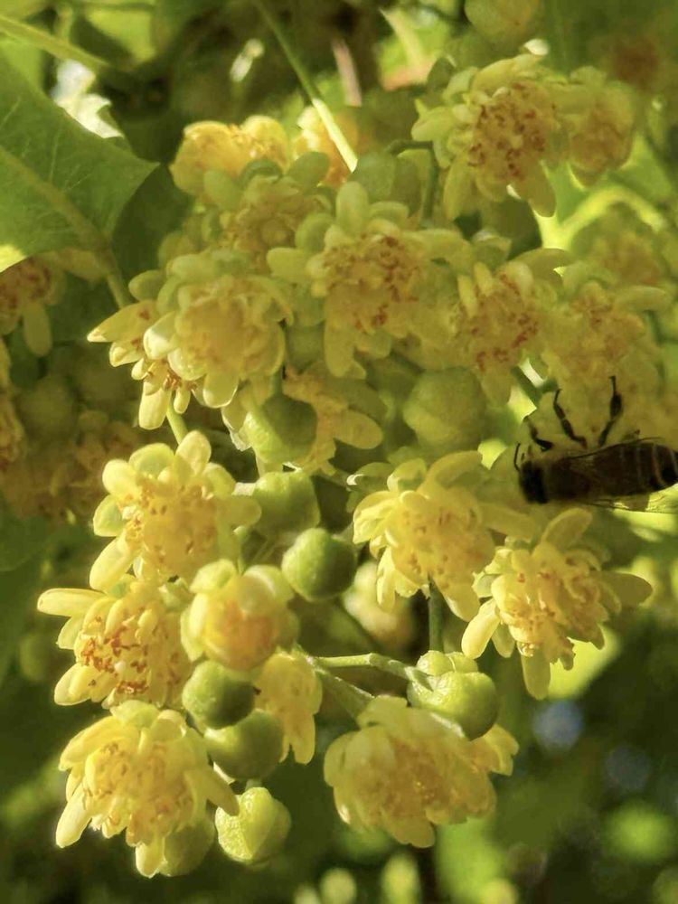 菩提樹、大好きな花です〜大きな木に花房がたくさん下がってミツバチが群がっていますよね、毎年この季節お寺の境内に見に行きますが今年はまだ行ってないのです次の休みの日に行ってみましょう