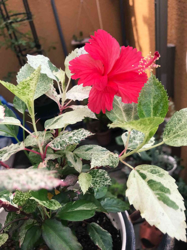 バルコニー/ベランダ,斑入りハイビスカス,夏の花の投稿画像