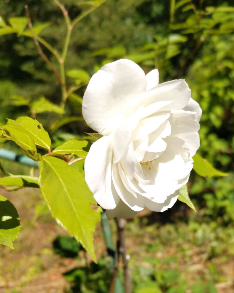 日陰側に昨年突然咲いた薔薇!台木のノイバラとも思いましたが、花びら多し?!😅