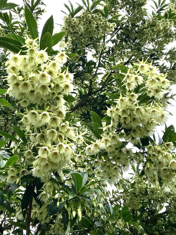 公園で真上を見ると、筆のようなお花がぎっしり咲いてます〜💚🤍😍