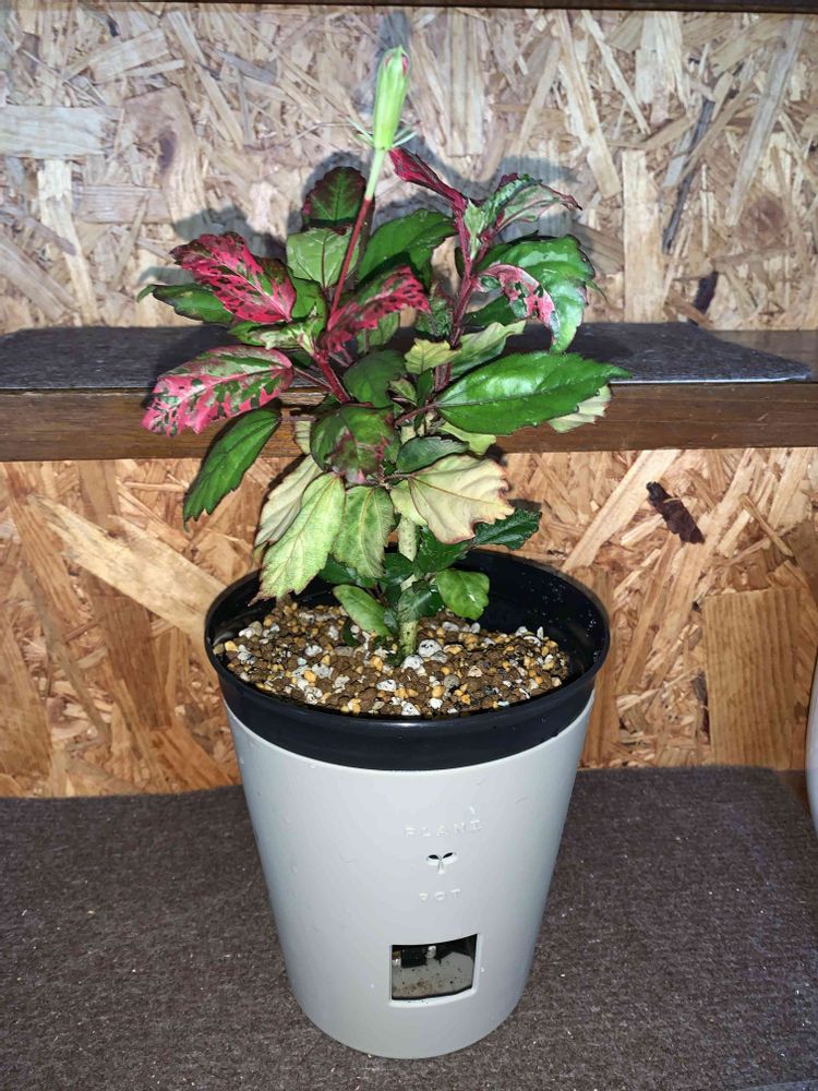ハイドロカルチャー苗の時点で根がはみ出しまくりでしたので、底面給水ポット5号サイズに無機質で植えました。
