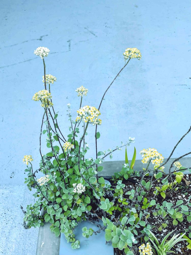 出勤途中で,通り道のカフェの花壇に,ヘリクサム・ペティオラレの投稿画像