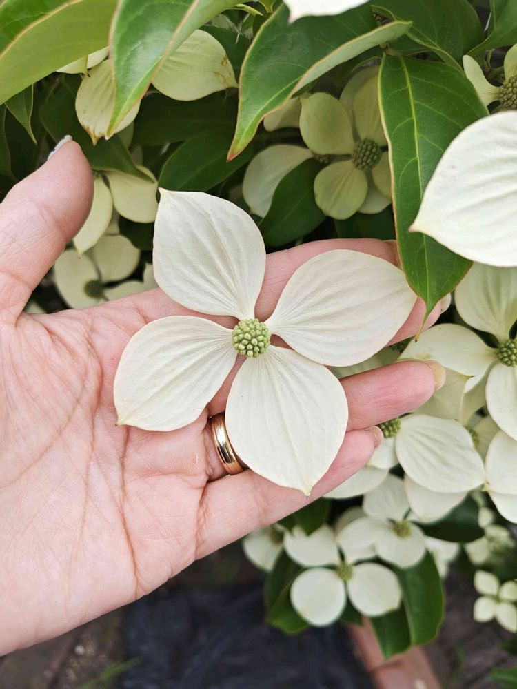 花の部分は球形の緑。花びらにみえるのが葉が変化したもの(総苞片・そうほう)という構成。名前の由来は中央の球形の花を僧侶の頭、白い総苞を僧侶の頭巾に見立て比叡山延暦寺の山法師になぞらえたものといわれています。…だそうです😁