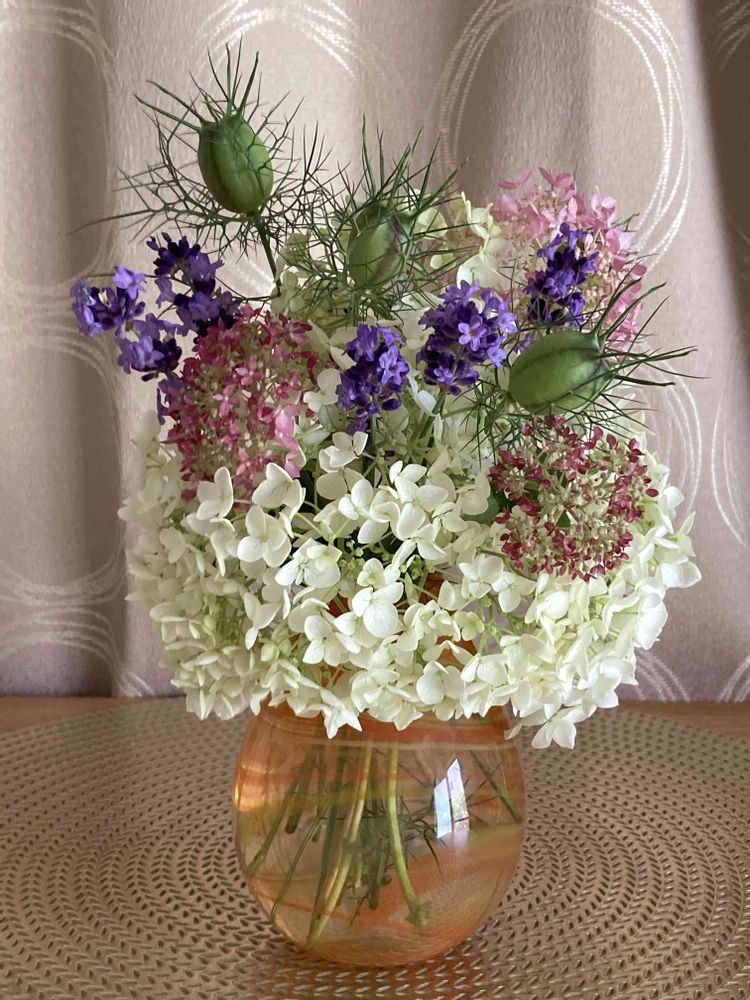 ニゲラはブルーの予定が全て薄いピンクしか咲かなくて😅