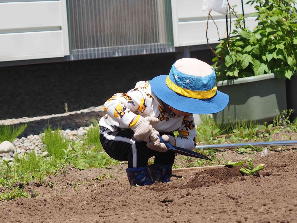 pic4 種から育てたかぼちゃとズッキーニを定植する息子🧒🏻笑