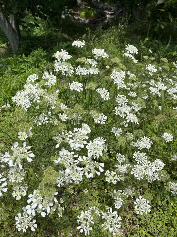 だいぶ種になってしまいましたが、こぼれ種で森に群生した、オルレアホワイトレース🤍