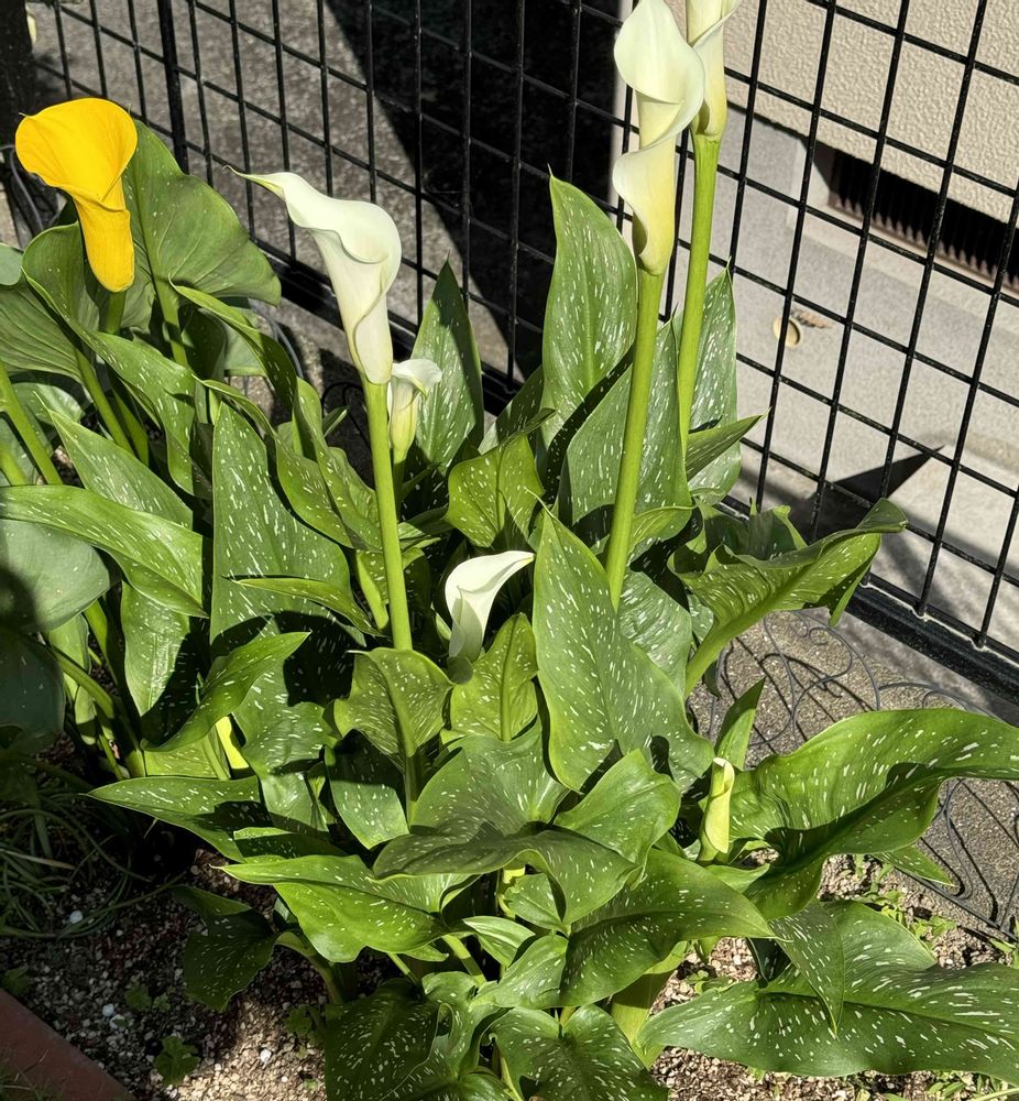 カラーは、芽吹き〜開花は、たっぷり灌水だそうですが、開花しても、たまにはたっぷり灌水しています。