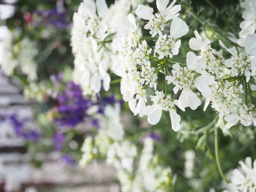 今年はいろんな苗を買うタイミングを外してしまったので、去年種をとったオルレア、ラークスパー、アグロステンマを薔薇前にどっさり咲かせました。