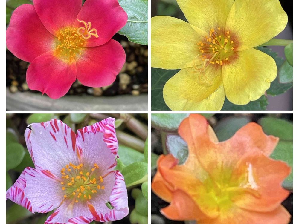 これはひとつの苗木から咲くのか?色んな色がでます。虹色ポーチュラカ🌈根元を見てみよう。👀