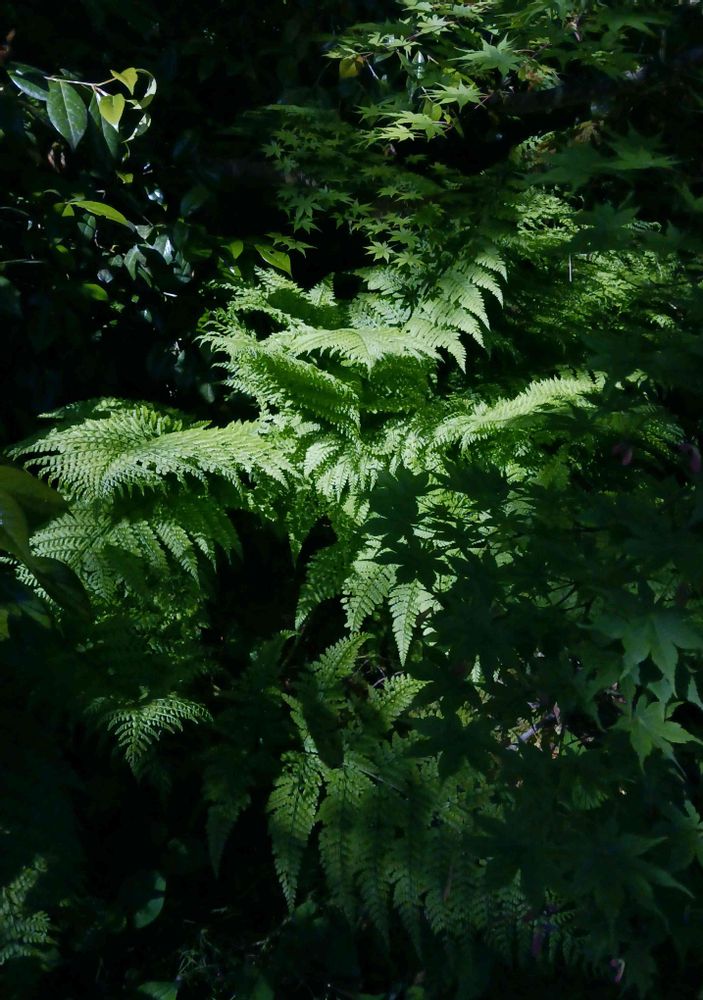 ③森の中、一条の光が射し込む場所で青モミジとのコラボが綺麗でした