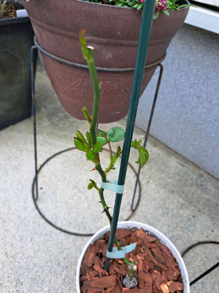 バラを育ててみたいと思い、ホームセンターに行ったら、売れ残りのボロボロの新苗が398円😅