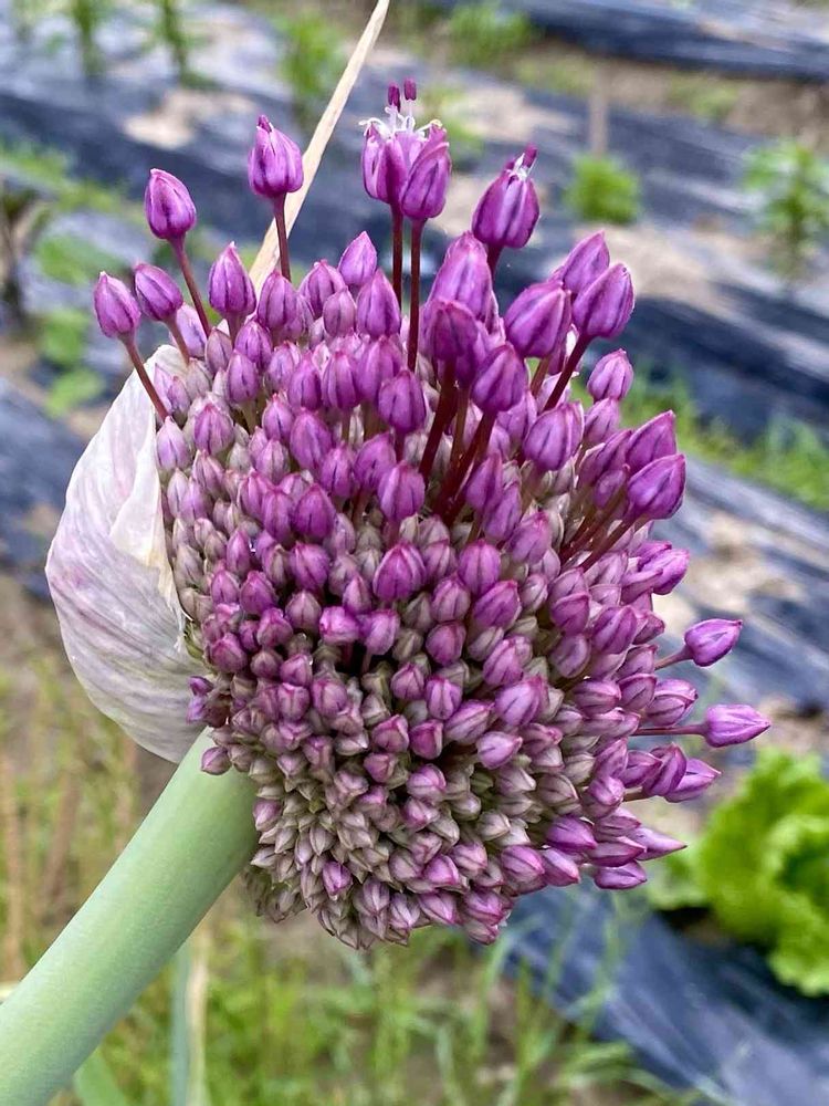 紫のニンニクのお花は初めて見ました。綺麗ですね✨