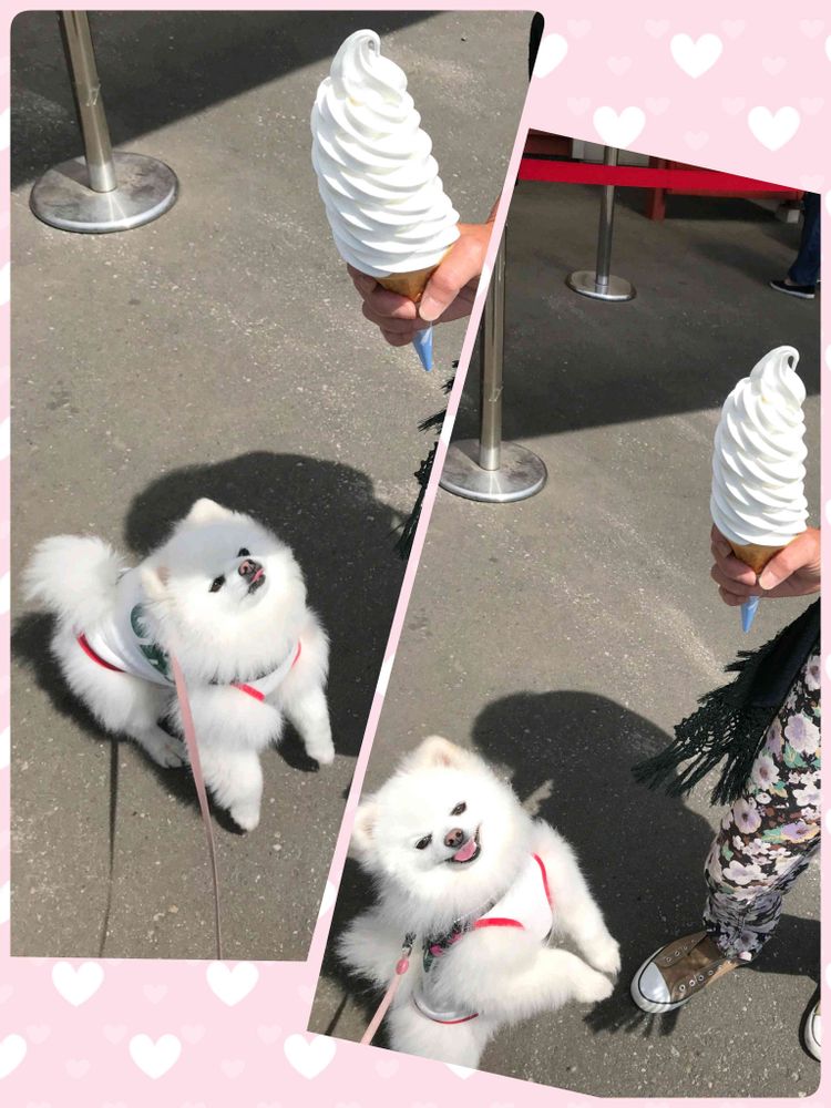 ソフトクリームを見る大福ちゃんの👀が可愛い😍