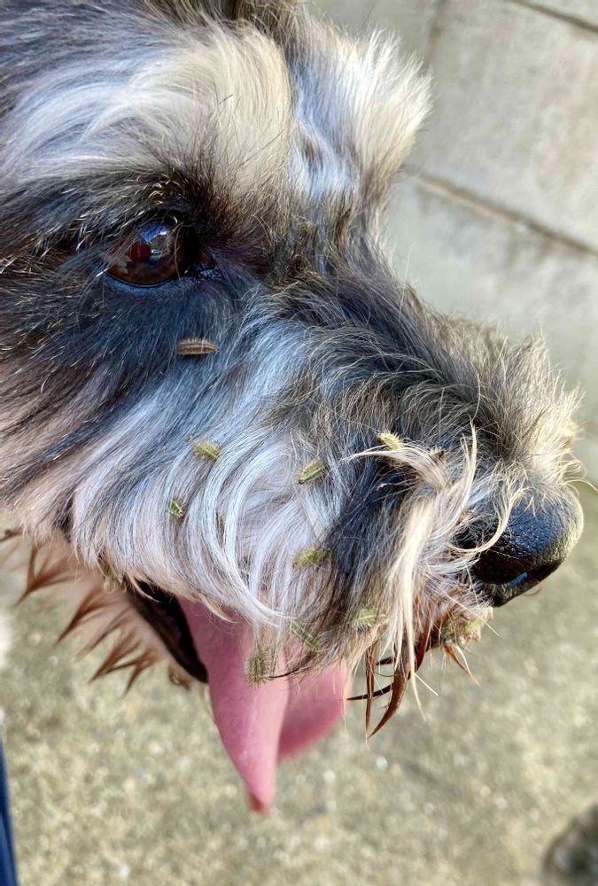 暴れてひっつき虫取れんで、どうしようもなくてハサミ✂️で毛を切ったこともあるわ〜😅