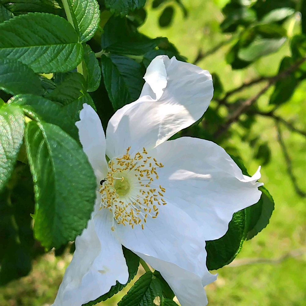 訪れた…六甲高山植物園内に…咲いてた…珍しい白花…ハマナス…の花