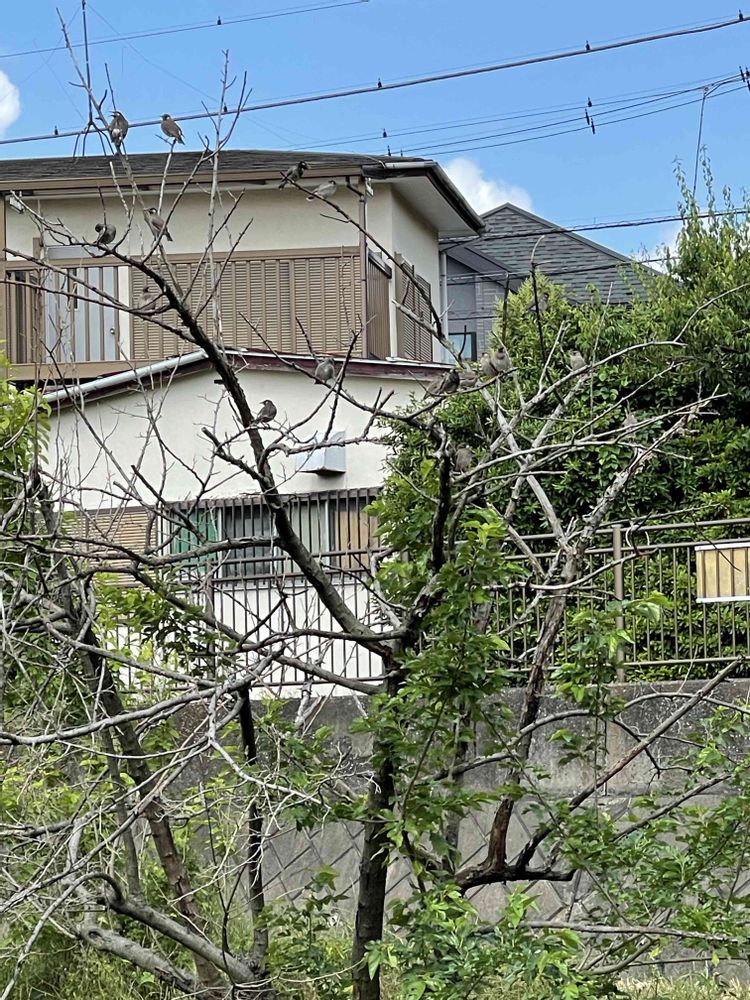 洗濯物を干しながら、裏の🏥に自然発生した 桑の巨木(2階よりデカイ)の鳥を観察してました👀