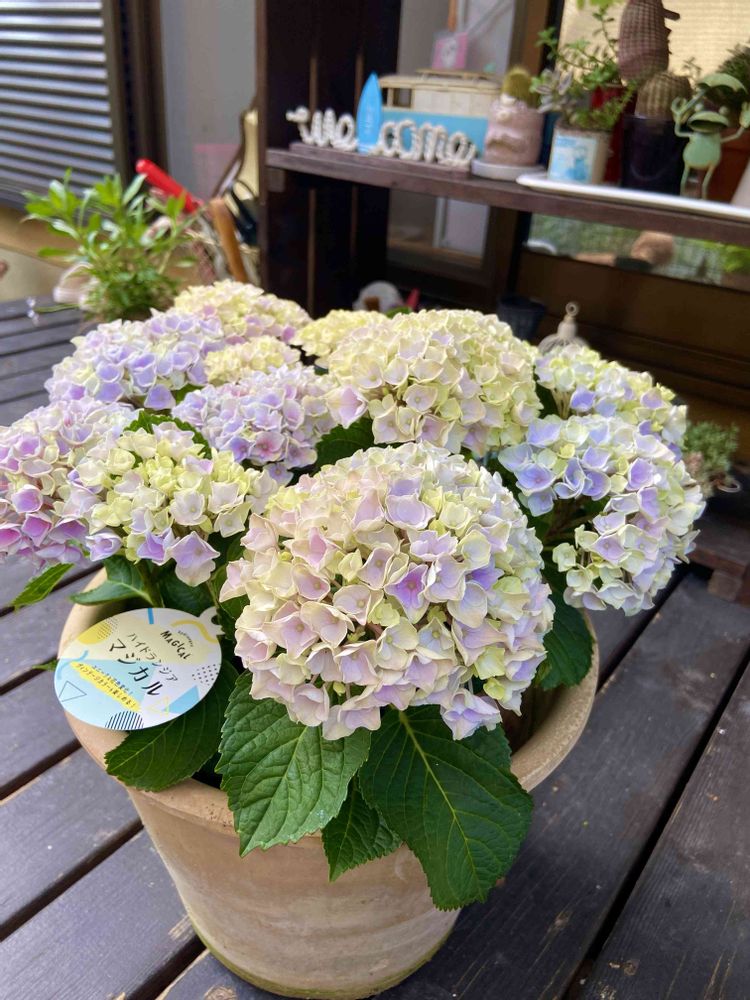 前から紫陽花のマジカルレボリューションが欲しくて探していましたが、好きな色合いに出会えずで、今日も紫陽花を見ているとレボリューションではなかったのですがとても好きな色合いだったので、「マジカル」をお迎えしてしまいました(〃ω〃)