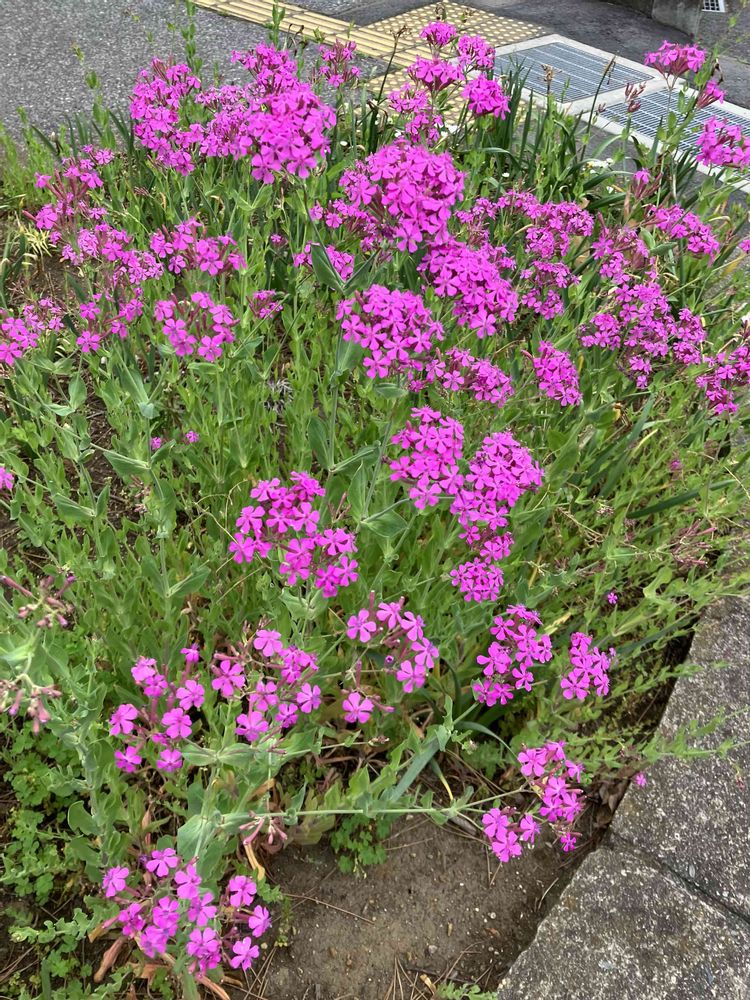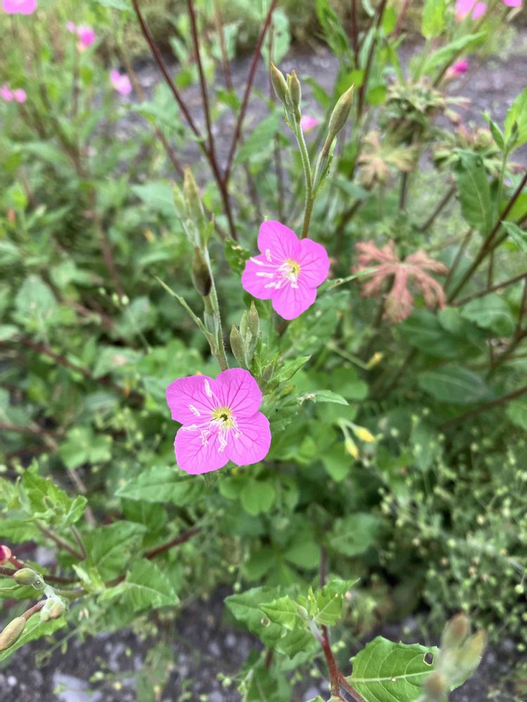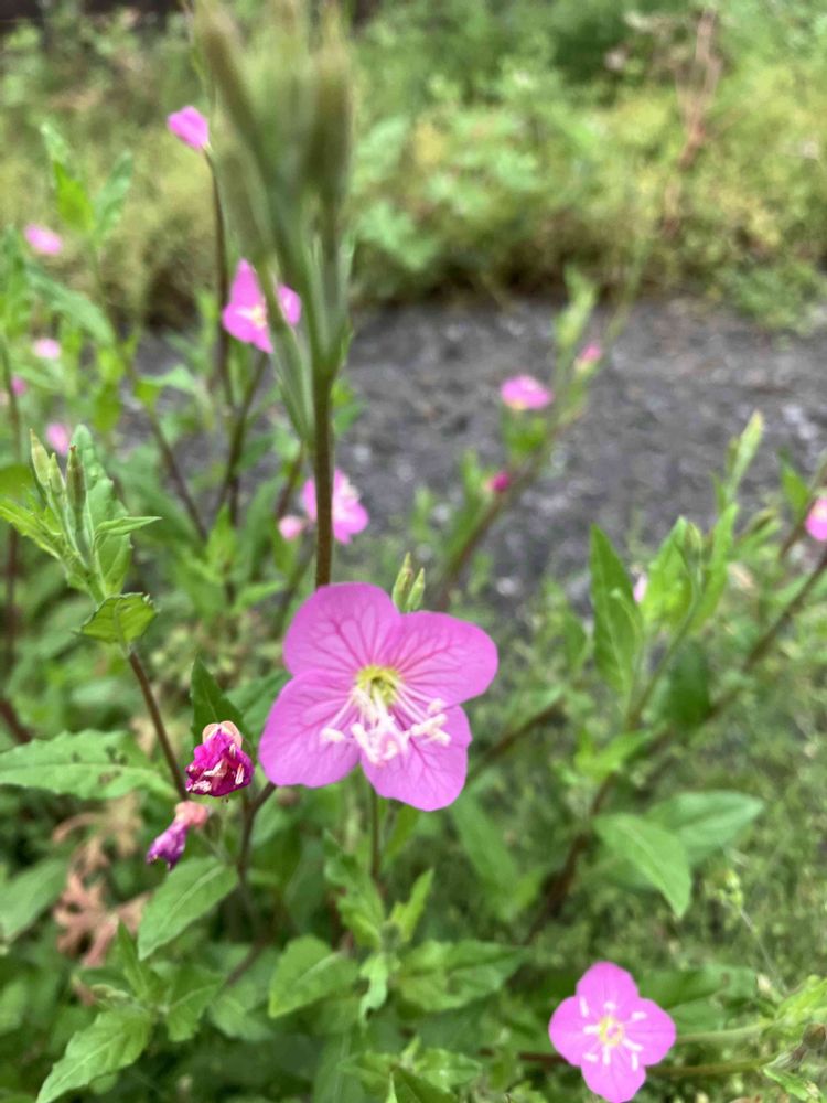 職場の駐車場付近に咲いていたアカバナユウゲショウと、ムシトリナデシコ🌸