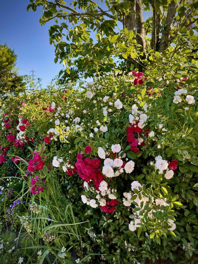 5 🤍八重のつるバラとコラボせず、あとから咲いてるクレマチス💜