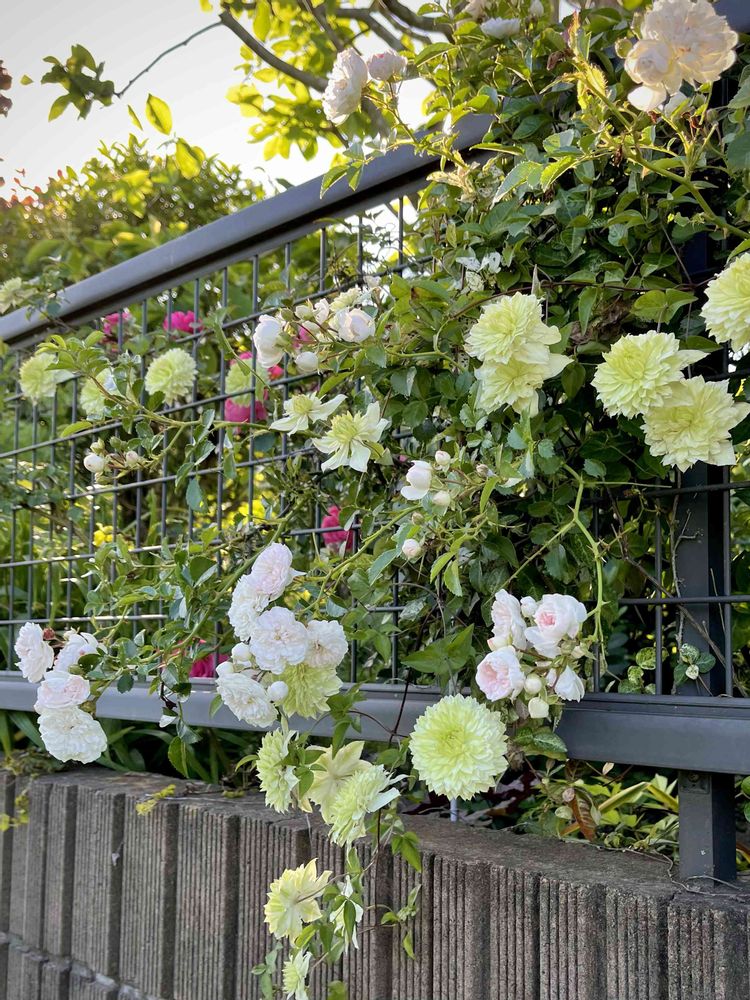 フェンスのつるバラが満開になりつつあります(*^^*)