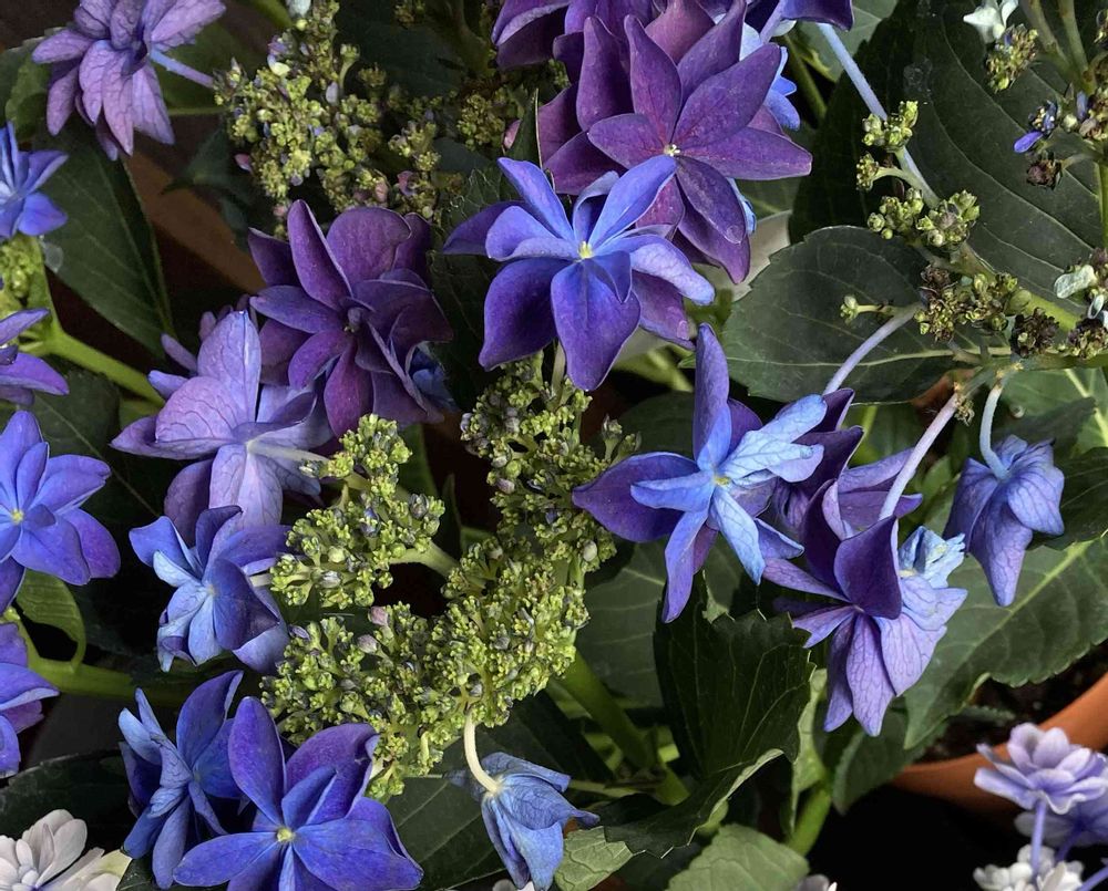 1枚目の写真は今朝の[ルーリィ]で、青色と石灰の影響を受けた紫色の花房があります。