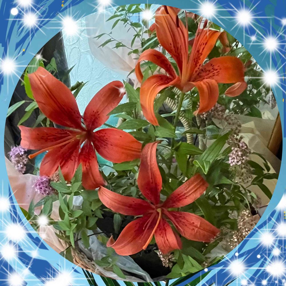 地域作業のオマケ😍❣️🙏。道路まではびこってたスカシユリさんを頂きました。💐