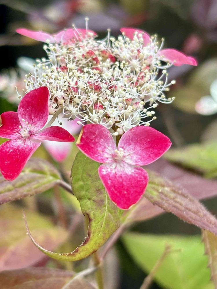 昨日、ぐうぜん見つけたヤマアジサイ紅。