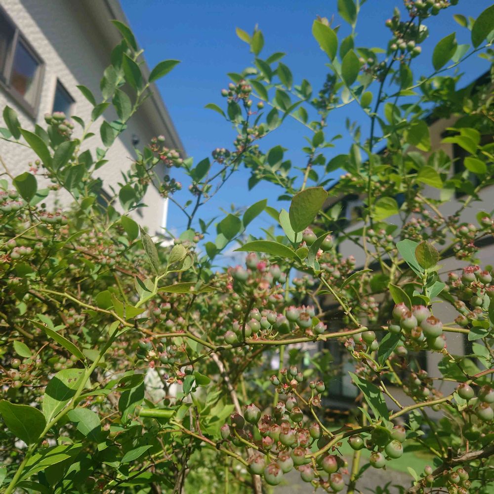 毎年そこそこ成るが今年は更にたくさん実がついているブルーベリー🎶