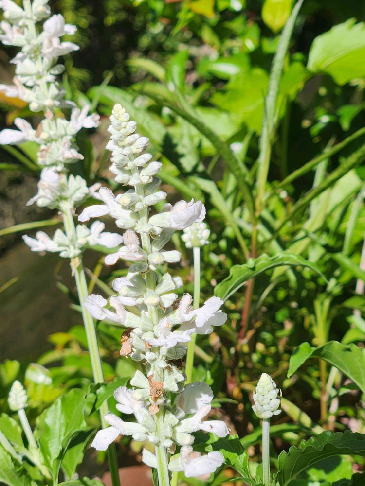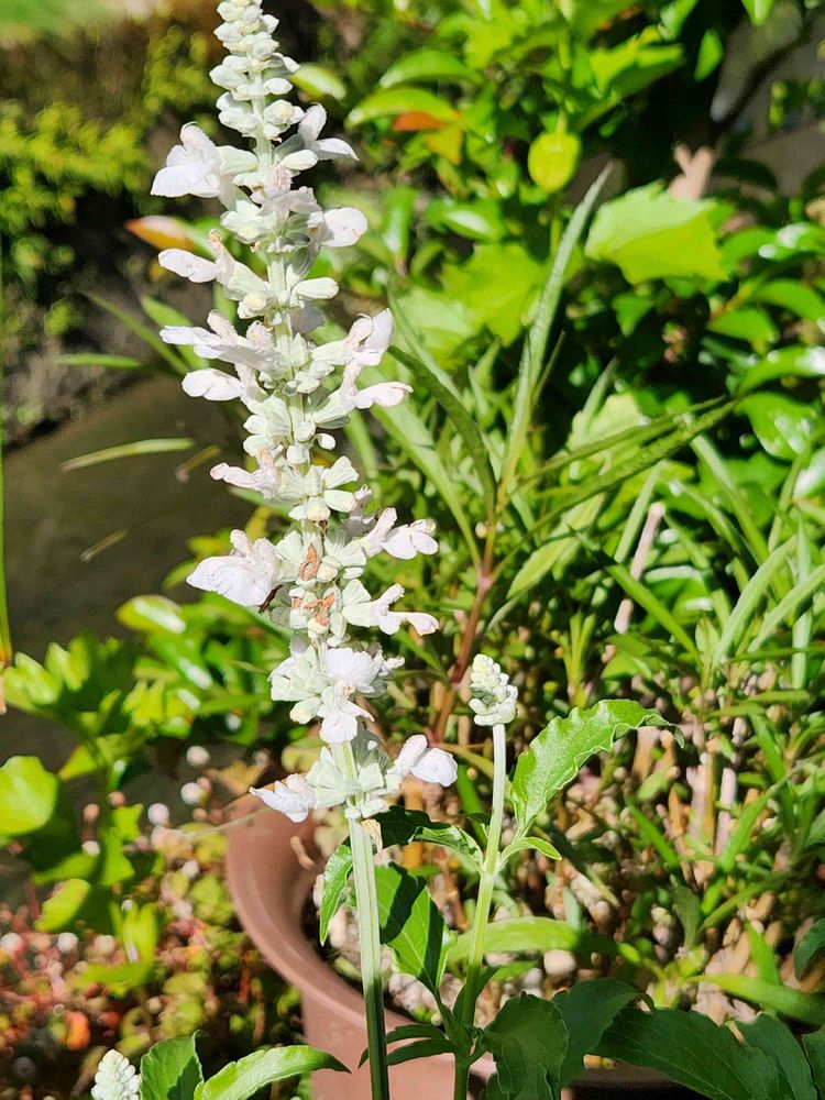 一昨年に寄せ植えに植えていた、ホワイトのサルビア、咲いてくれました。
