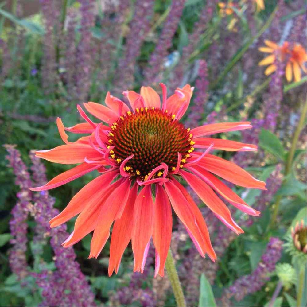 こんばんは❣(#^.^#)❁今日も暑かったですね。このエキナセアさん赤からオレンジに、そして緋色も入っていて素敵です❣グラデーションの美しさも楽しめるんですね〜。大女優の品格💕