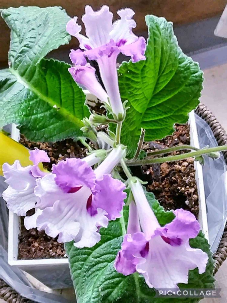 先日お迎えしたストレプトカーパスさん 蕾が全部開いてくれました🤍💜🍀🤍💜🤍🍀