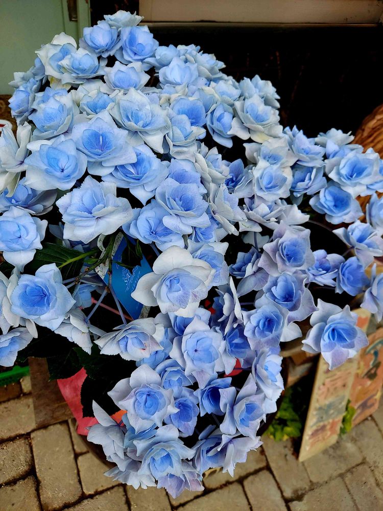 散歩道のお店前に咲いていた🚶♀️とても綺麗なブルー系のアジサイ🩵💙🩵