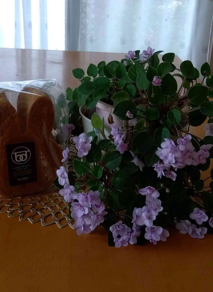 ⑤セントポーリアも次々開花💜うさぎ型🐰のデニッシュパン🧈☕😋