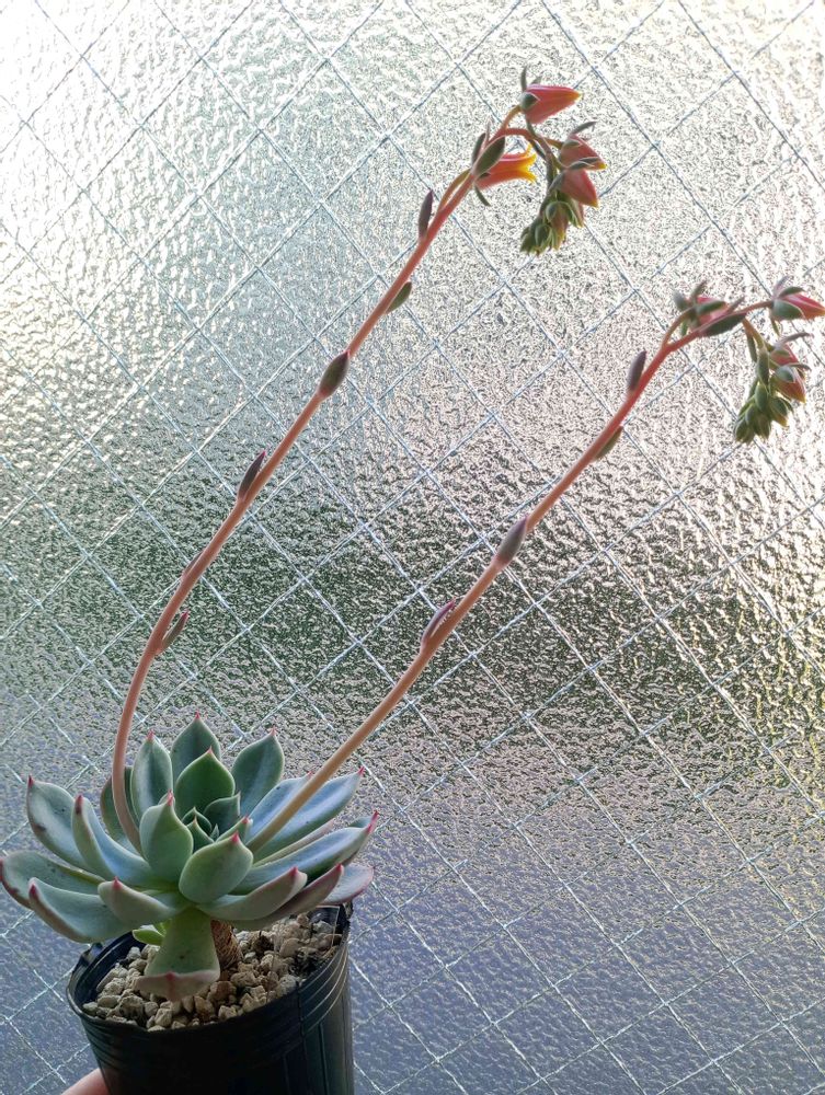 もんちさんのエケベリア 七福美尼,ベランダ多肉,お花が咲いたよ♡の投稿画像