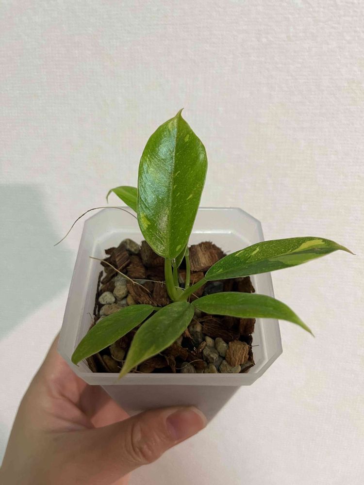 2025.8月に某サイトで購入した【アロカシア チャイ】の 突然変異?なんだろう 購入時、元々有った葉を(1枚目の葉)として、 下から新たな葉が出てきてる状態で到着しました(2枚目の葉) こちらに来て初めて出てきた葉に異変が。。 育て始めて出てきた初めての3枚目、4枚目 (途中から、斑1、斑2、、と続きます) どこまでこの謎の斑入葉が続くのか、 いや止まるのか……記録していきます