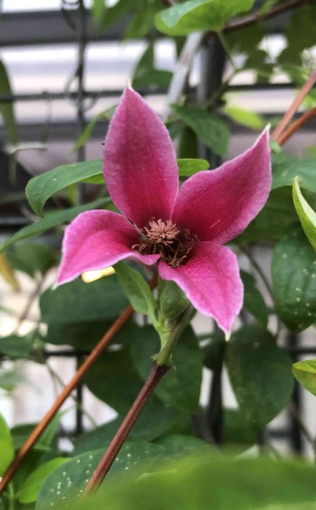 夕暮れ時、我が家のクレマチス「プリンセス ダイアナ」さんをパチリ!📸🩷🌿👸😄🤗🌇✌️