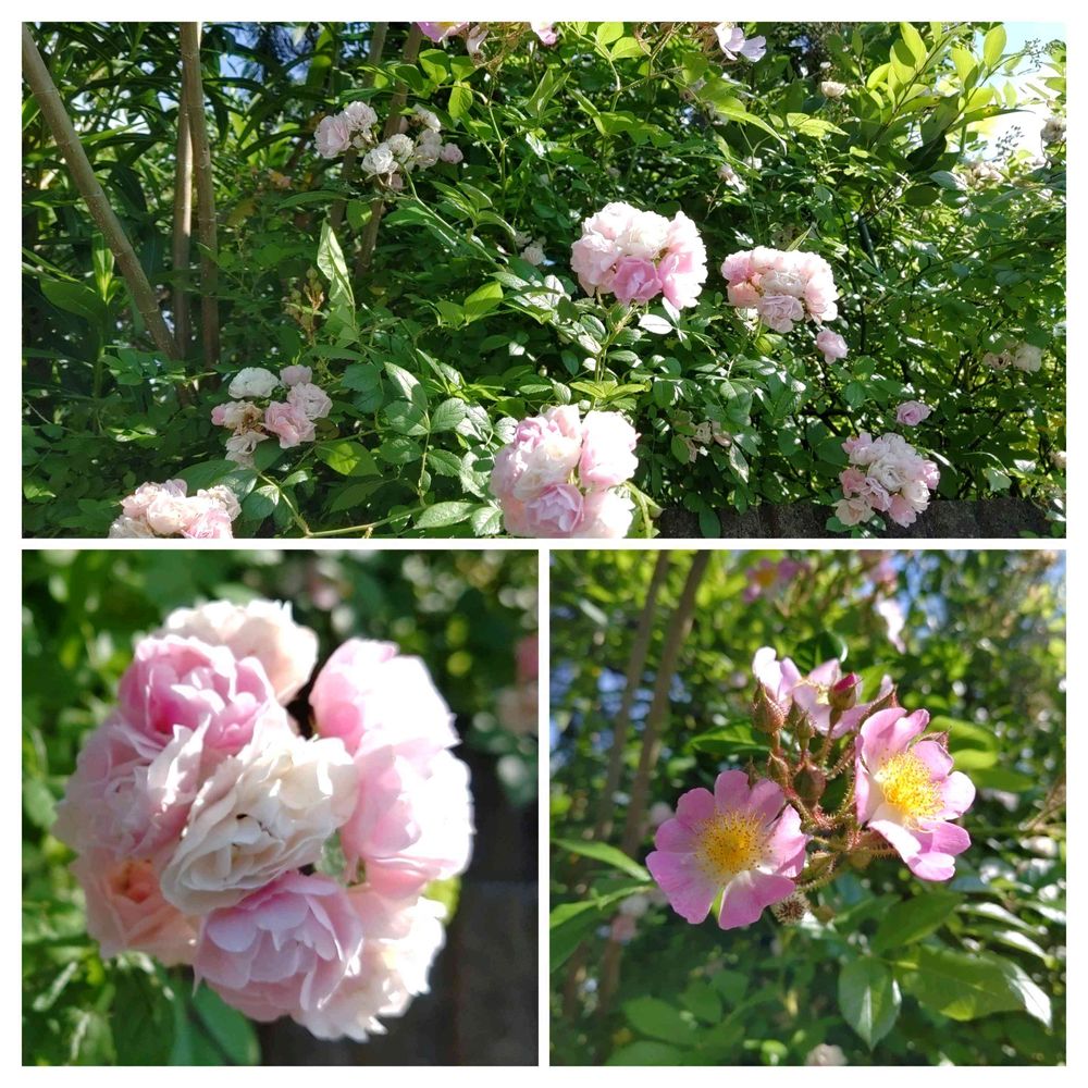 ノイバラが終わり、まだ花盛りの群舞に加え、ツクシイバラが咲き始めました😍
