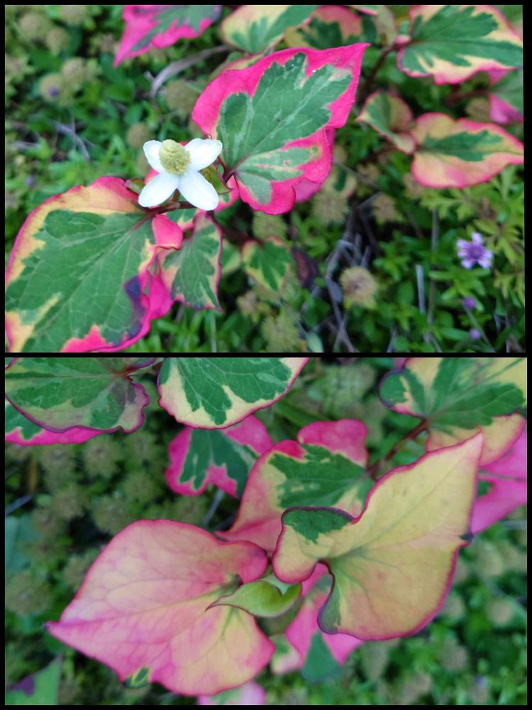 ドクダミの斑入り、赤くなり目立ちたがり屋さんですよ❣️