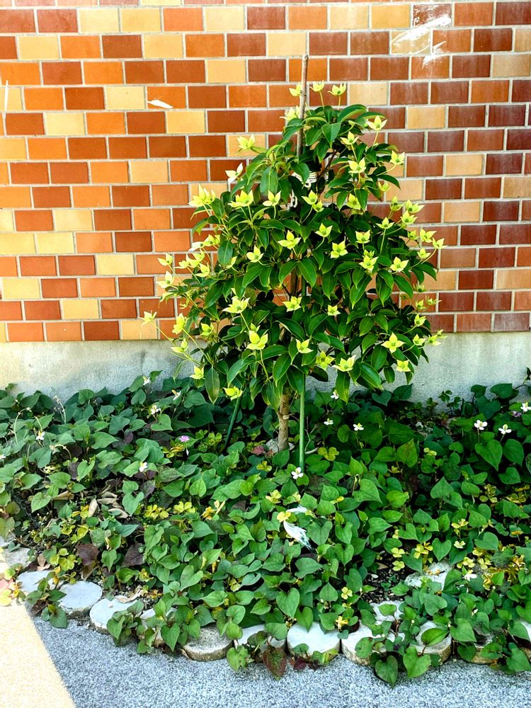 朝の散歩道,通り道のお宅のアプローチに,ヤマボウシの若木の投稿画像